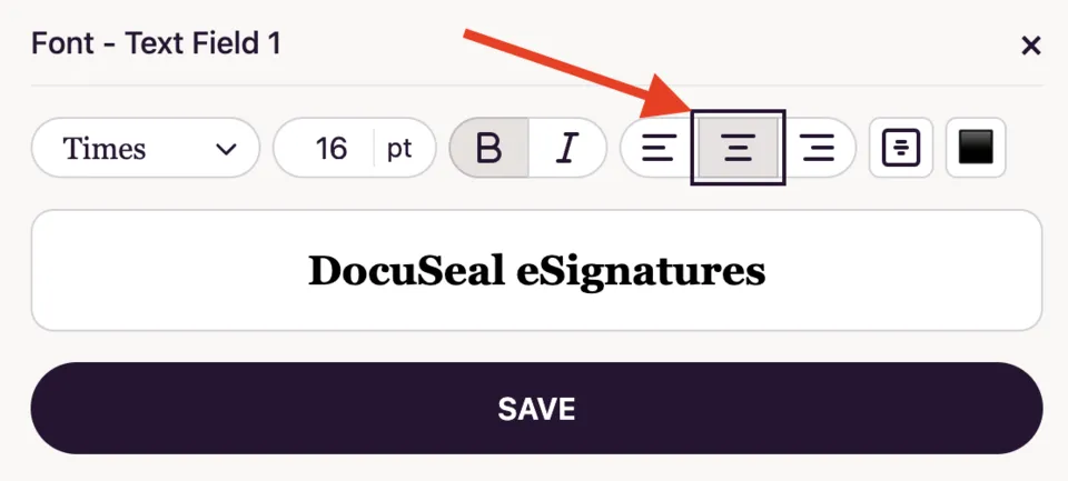 You’ll see a preview of your styled text (e.g., DocuSeal eSignatures) in the field.